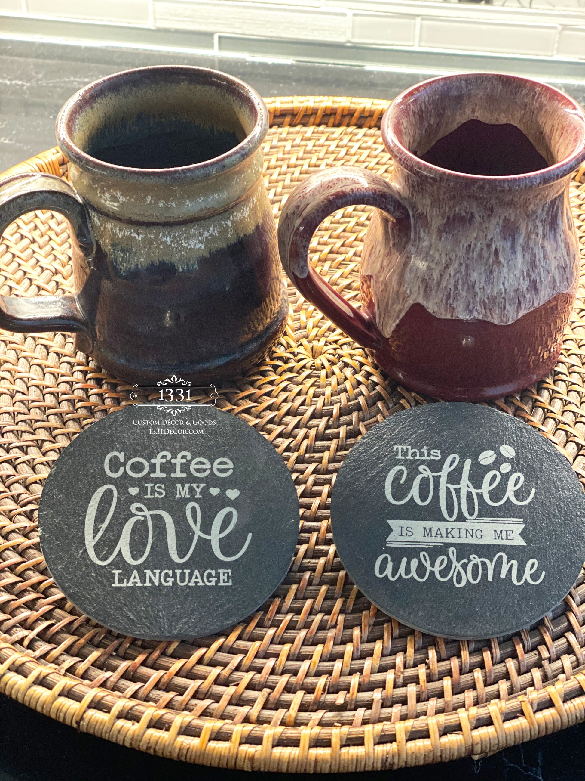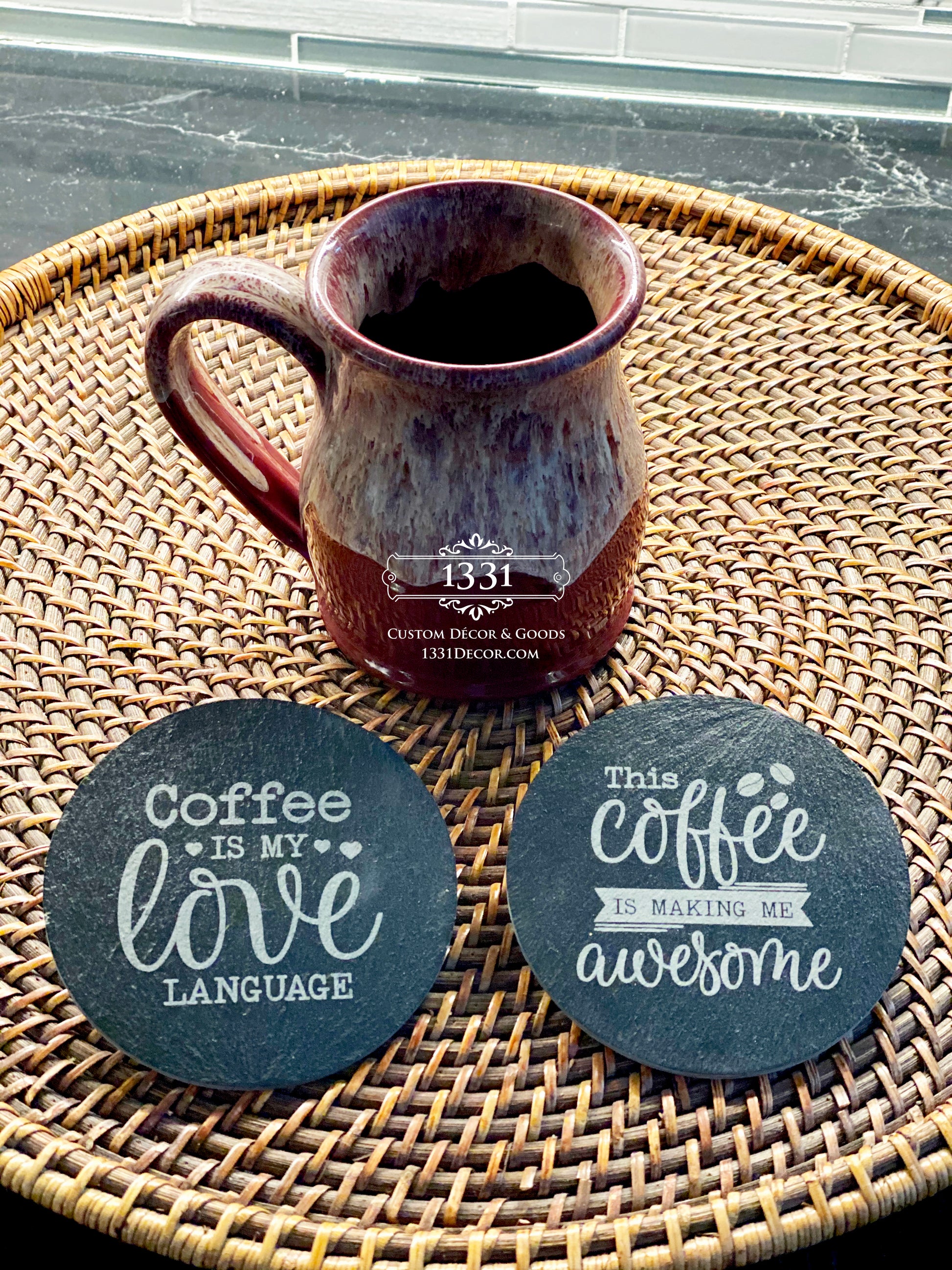 Slate Personalized Coaster Set, Coffee Coasters, Coffee Coaster Set, Set of Coasters, Coffee Lover, Coffee Lover, Drink Coasters, I Love Coffee