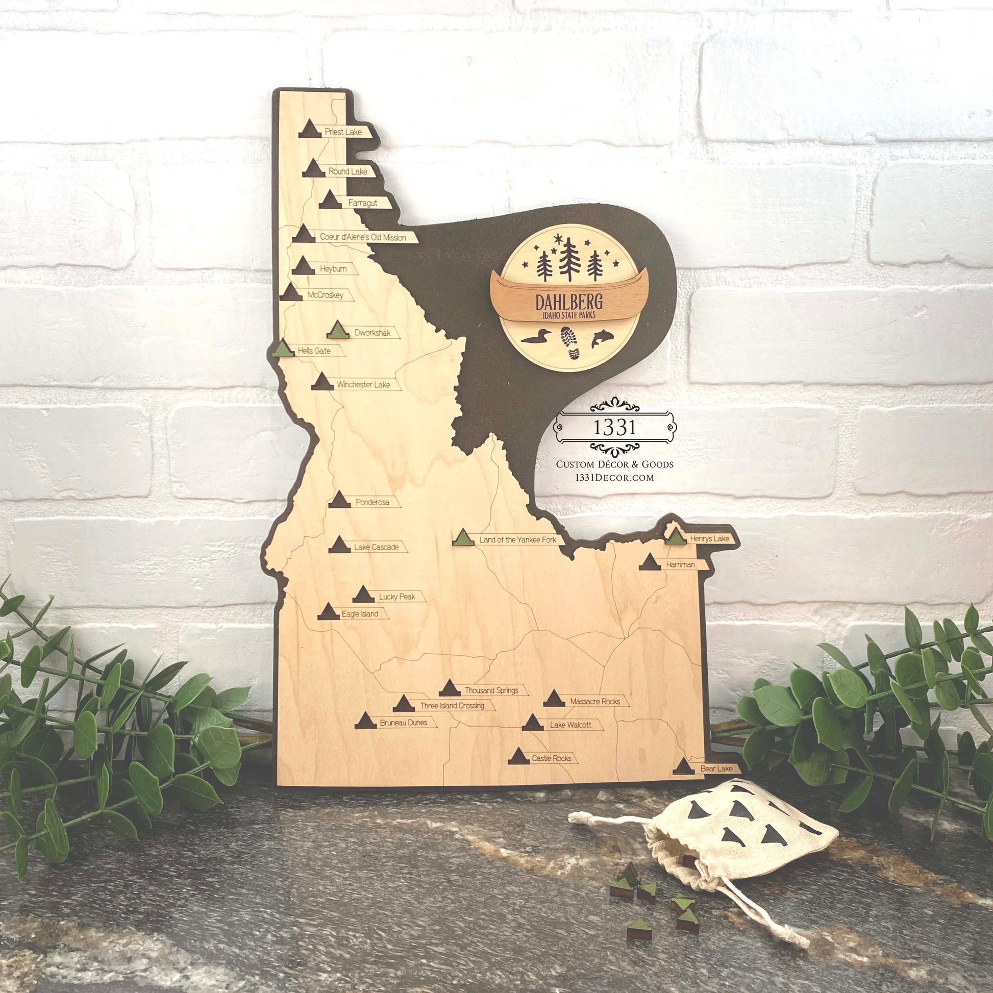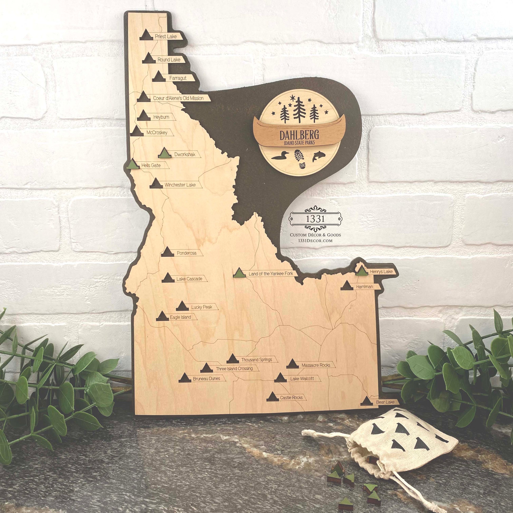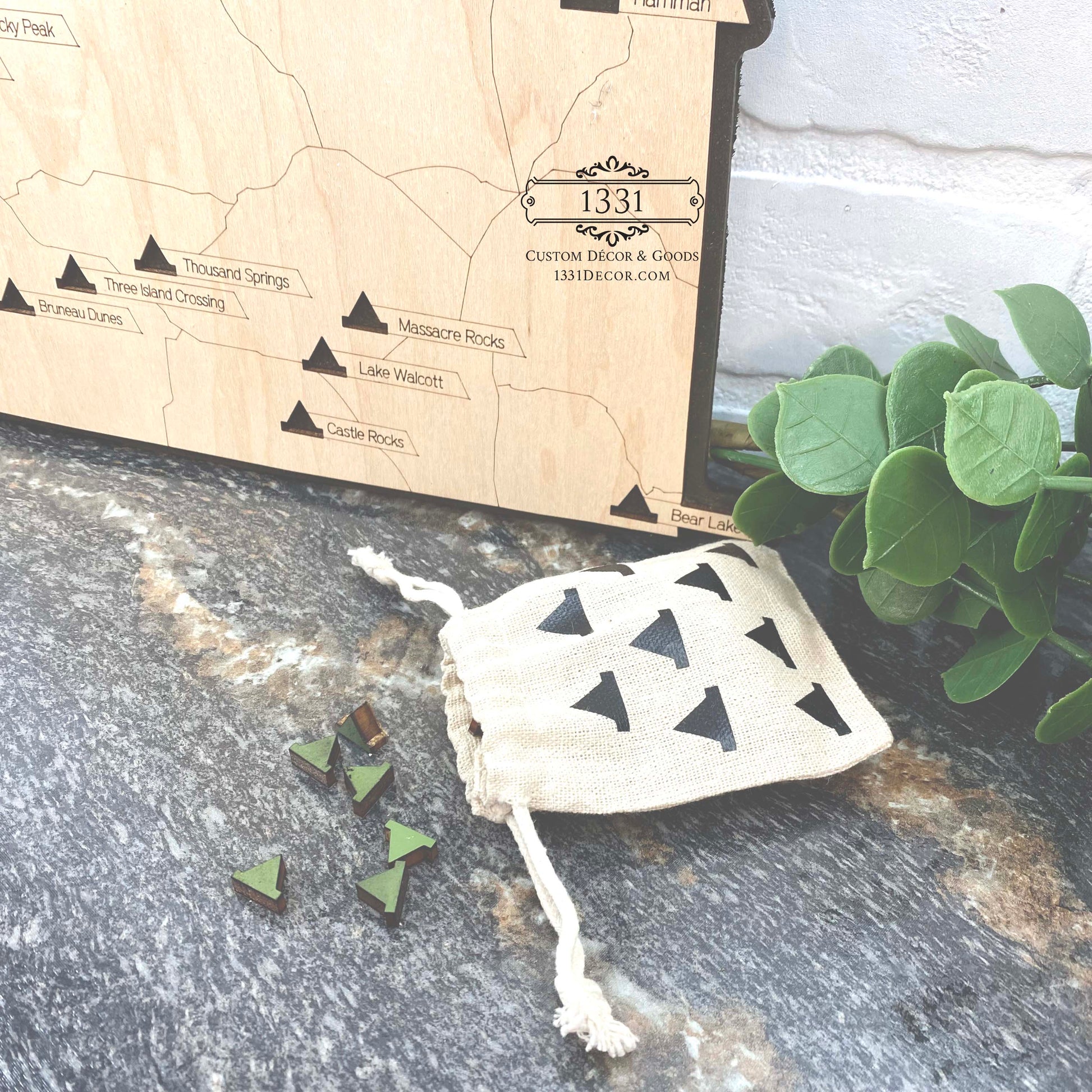 Made of two layers, the map includes little camping tents to mark the state parks you've visited. Simply peel off the back piece to expose the adhesive before placing by the appropriate park.