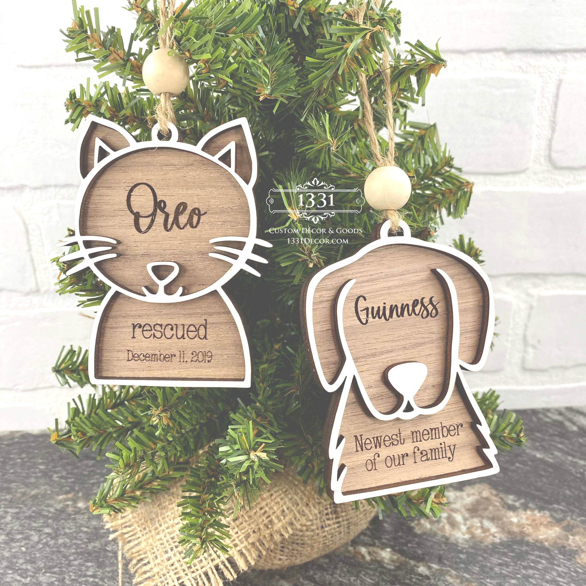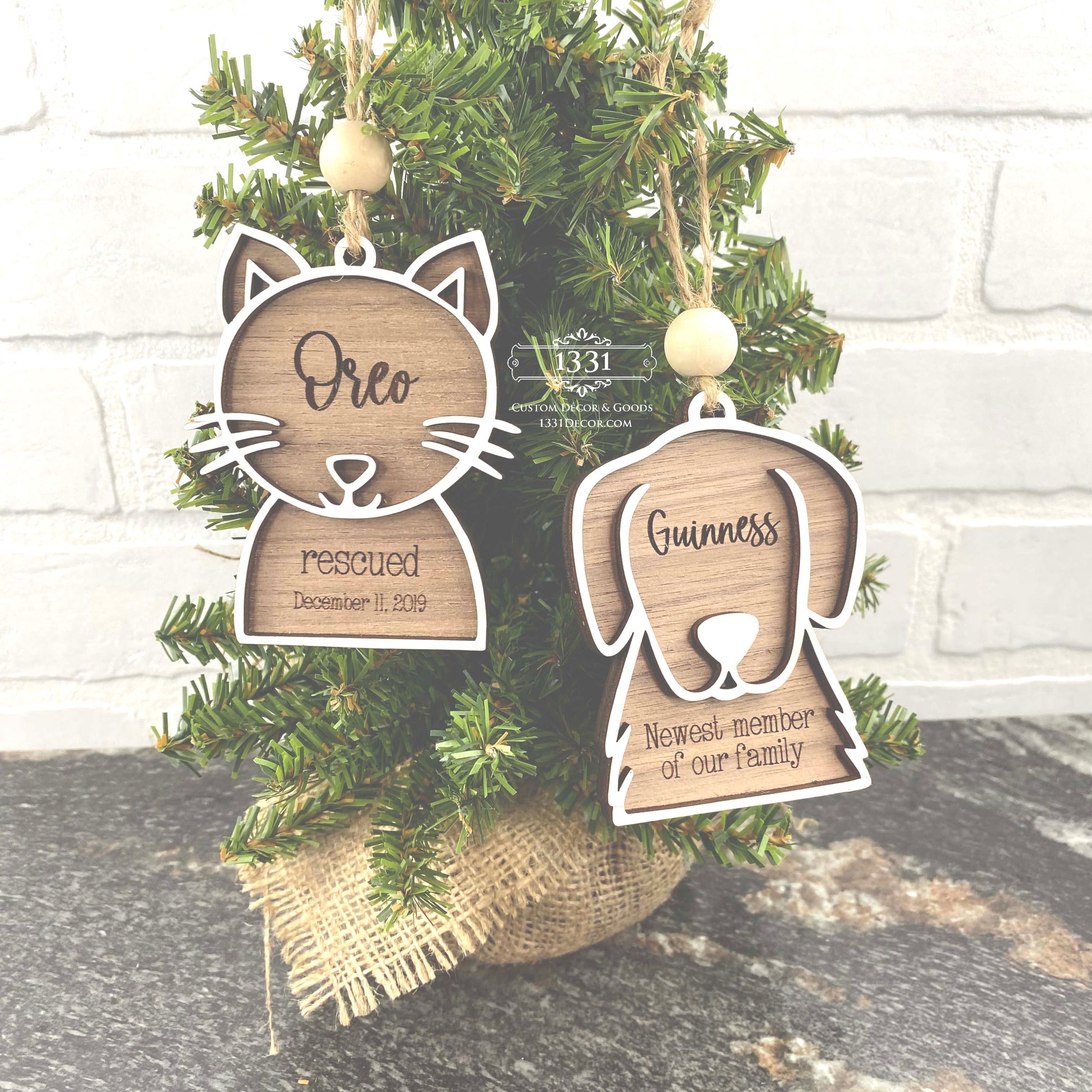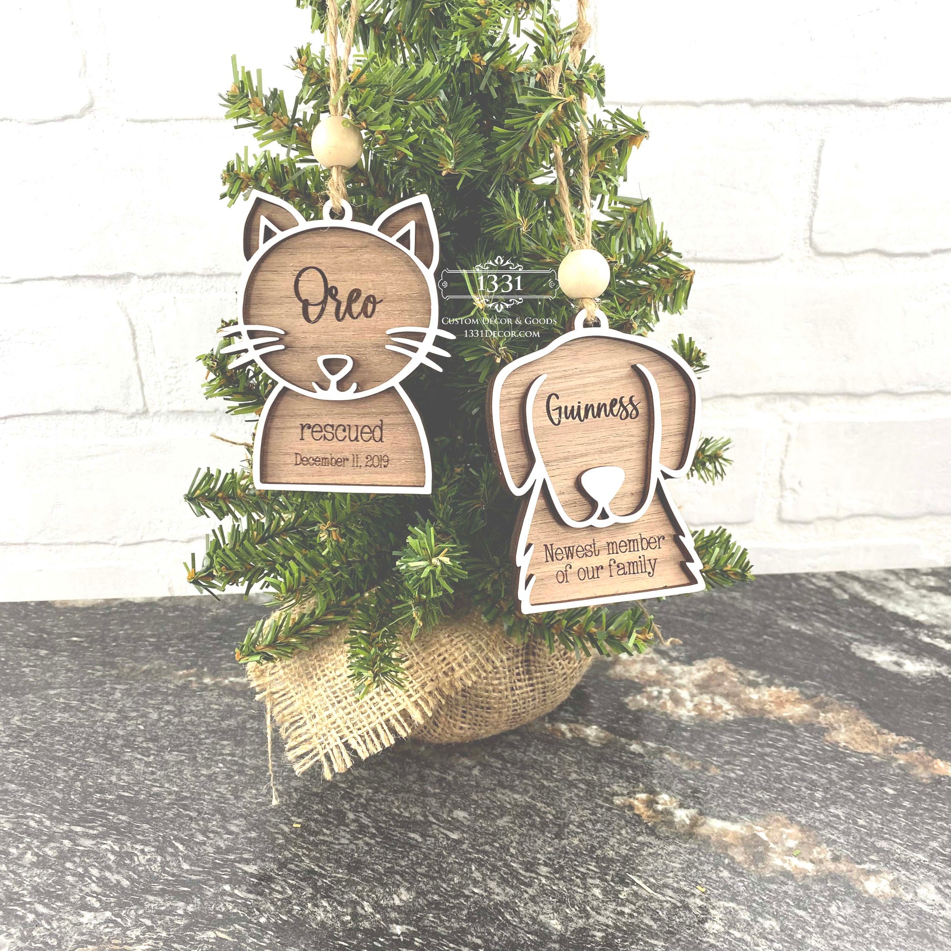 Available for dog or cat, you can personalize with the pets name, a short phrase, and/or dates. Some examples are in the photos.