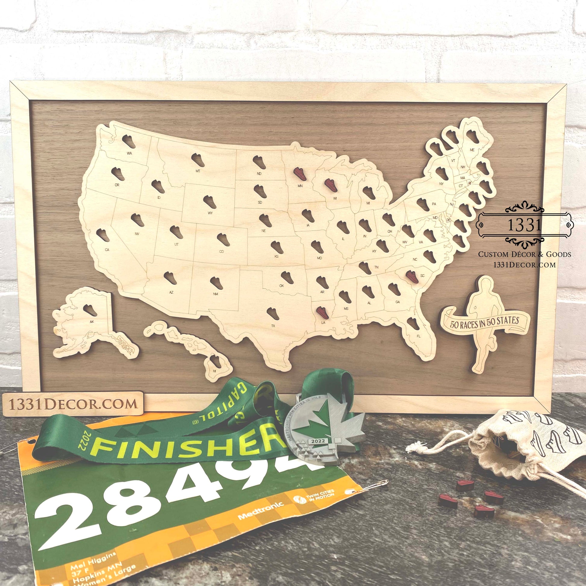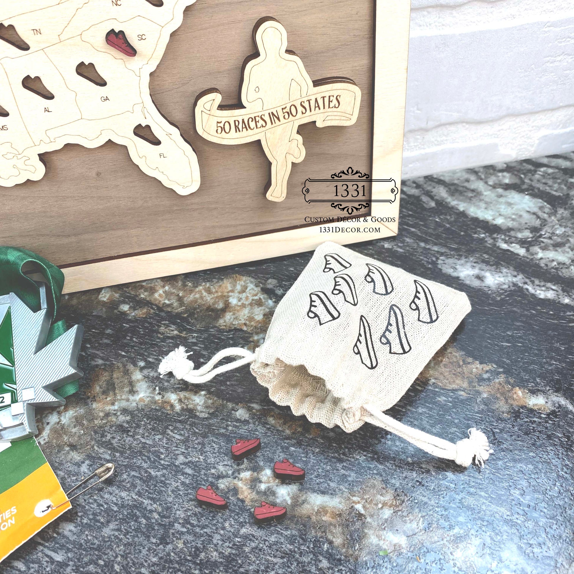 Once you've conquered that race in a new state, place the shoe piece in the map for that state - and then start planning your next race!